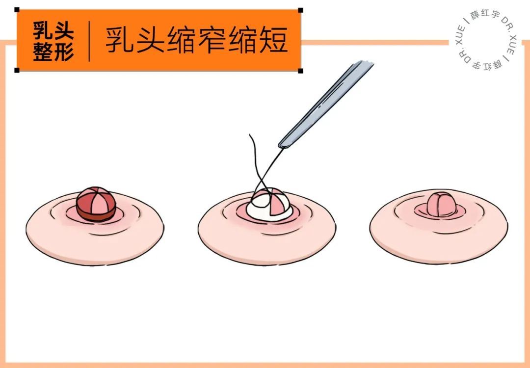 乳頭肥大可能是寬-需縮窄、可能是長(zhǎng)-需縮短、可能皆有-需縮窄縮短,都是根據(jù)實(shí)際情況設(shè)計(jì)切口、縫合,達(dá)到改良。