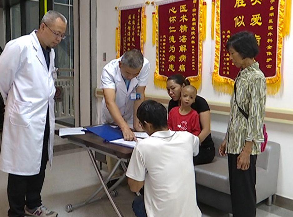 鑫湖醫(yī)院外科住院醫(yī)生李玲剛說:因為我們醫(yī)院是省殘聯(lián)的定點醫(yī)院,我們醫(yī)院派出康復(fù)科的人出去全省篩查,篩查了以后有這些畸形的娃娃,還有殘疾的娃娃,全部拉回來,篩查分科,分在我們外科的,我們就通過視頻、通過照片發(fā)給公立專家,給他們看??戳酥缶徒o他們評估。如果是復(fù)查,我們親自帶了上去,請專家看??戳艘院螅賮頉Q定手術(shù)的時間,家長不用出什么費用,就是醫(yī)保報剩下的,殘聯(lián)協(xié)會幫他報銷。