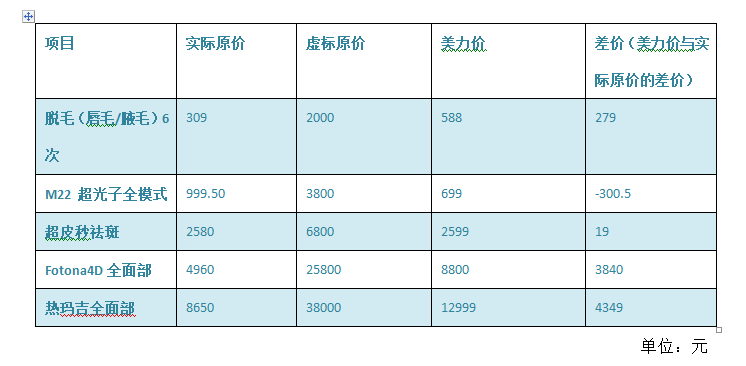 按照上海市市場監(jiān)督管理局查明的實際原價估算,上海藝星所謂的醫(yī)美服務(wù)促銷活動,只有“M22 超光子全模式”項目比實際原價便宜一些,其他醫(yī)美項目均比實際價格要高出不少。