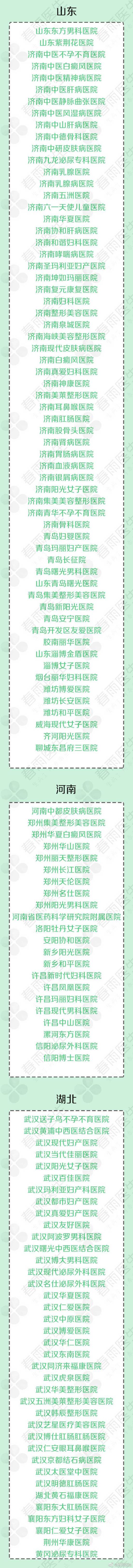 其中湖北武漢共有32家醫(yī)院被納入莆系醫(yī)院名單:武漢送子鳥不孕不育醫(yī)院、武漢黃浦中西醫(yī)結(jié)合醫(yī)院、武漢現(xiàn)代婦產(chǎn)醫(yī)院、武漢當(dāng)代佳麗醫(yī)院、武漢陽(yáng)光女子醫(yī)院、武漢百佳醫(yī)院、武漢瑪利亞婦產(chǎn)科醫(yī)院、武漢都市婦產(chǎn)醫(yī)院、武漢真愛婦產(chǎn)醫(yī)院、武漢友好醫(yī)院、武漢阿波羅男科醫(yī)院、武漢曙光中西醫(yī)結(jié)合醫(yī)院、武漢博大男科醫(yī)院、武漢現(xiàn)代泌尿外科醫(yī)院、武漢名仕泌尿外科醫(yī)院、武漢華夏醫(yī)院、武漢仁愛醫(yī)院、武漢中原醫(yī)院、武漢博愛醫(yī)院、武漢華仁醫(yī)院、武漢東南醫(yī)院、武漢同濟(jì)來(lái)??滇t(yī)院、武漢虎泉醫(yī)院、武漢華美整形醫(yī)院、武漢五洲美萊整形美容醫(yī)院、武漢韓辰整形醫(yī)院、武漢藝星醫(yī)療美容醫(yī)院、武漢博仕肛腸醫(yī)院、武漢仁安眼耳鼻喉醫(yī)院、武漢京都結(jié)石病醫(yī)院、武漢太醫(yī)堂中醫(yī)院、武漢明德肛腸醫(yī)院。