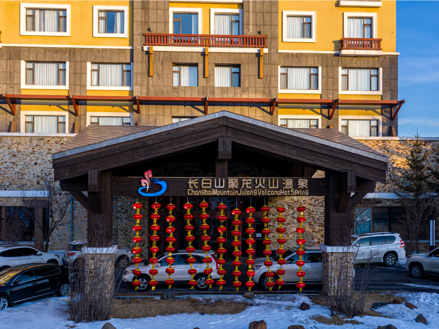 長白山聚龍火山溫泉(天池湯泉更名長白山聚龍火山溫泉)水源地為長白山瀑布下方區(qū)域的聚龍溫泉,泉水富含鈉、氫、鈣、鎂等物質(zhì),具有美肌效果。