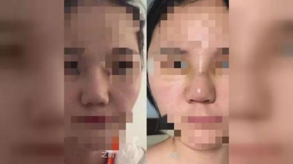 手術之后,小劉發(fā)現,只要用手在鼻梁上推一推,就能地感覺到鼻梁上假體的晃動,并且鼻梁的皮膚,晶瑩剔透,似乎能看到里面的假體。