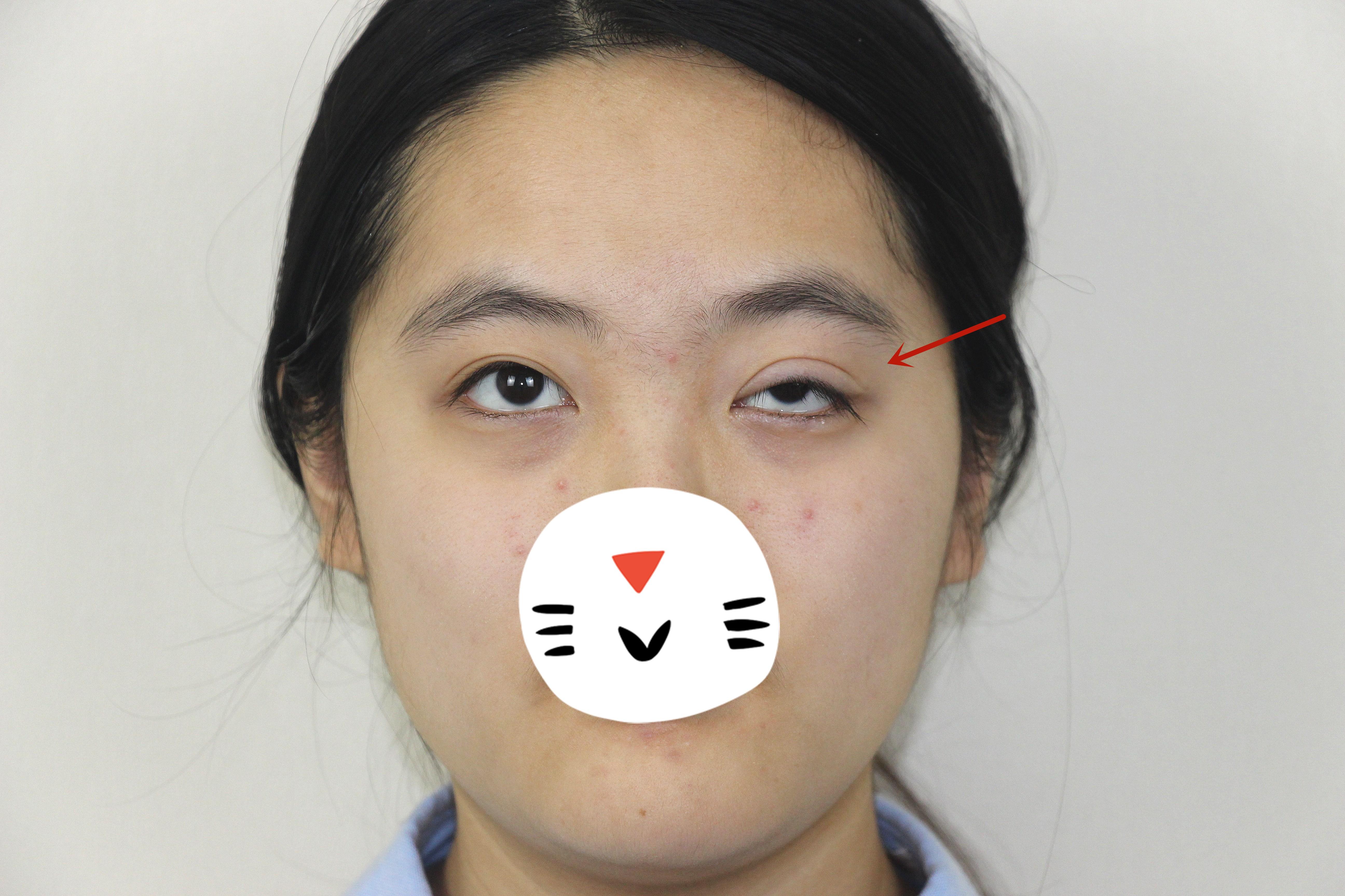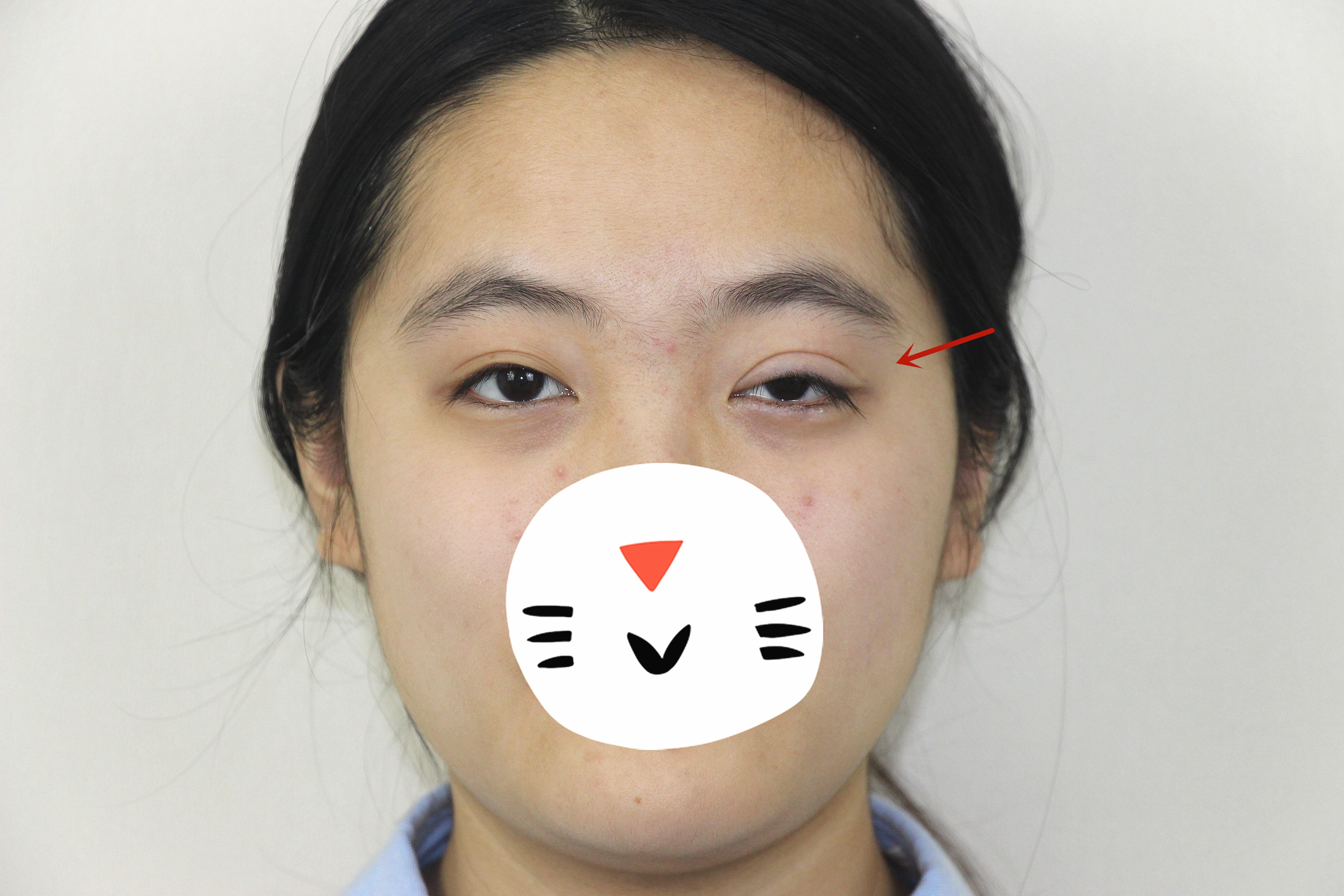 小姑娘來自東北,左眼先天性上瞼下垂,10年前在其他地方做過一次上瞼下垂矯正,術(shù)后效果不好。