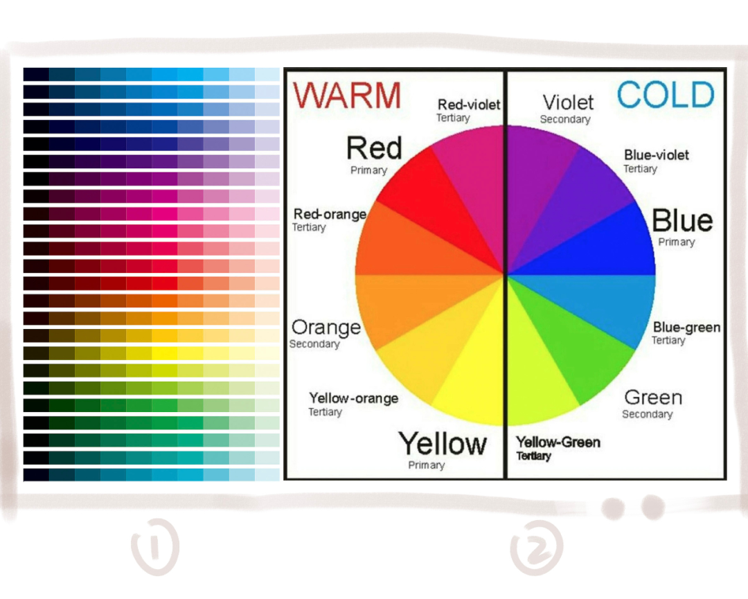 2.紅橙黃為暖色調(diào),藍(lán)綠紫為冷色調(diào)