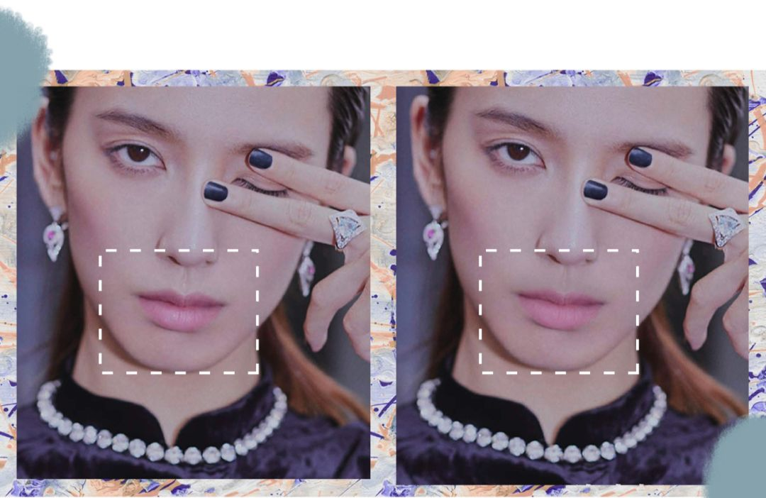 同學(xué)們有沒有發(fā)現(xiàn)陳庭妮下巴的顏色融入了第三層臉周色彩?。?!在黑白光影效果下看得更清楚,這樣子顯得嘴更凸了。修改后,是不是嘴巴凸感就減弱啦~