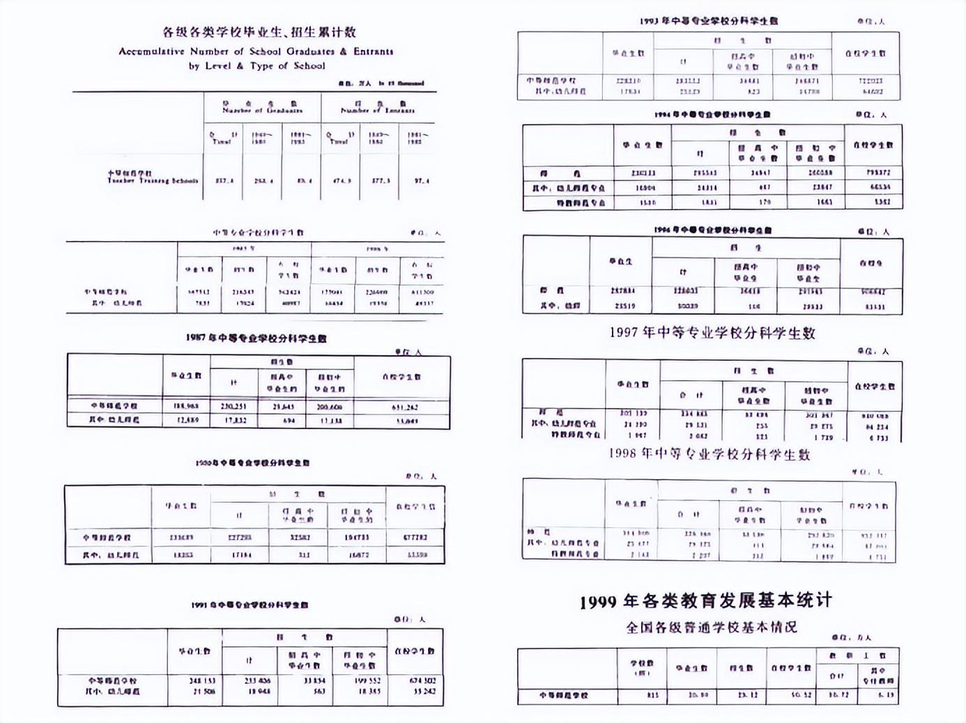 1990年中專3982所73.01萬人,中師1026所23.37萬人,據(jù)載1981-2000年中師生約400萬,按比例中專生1300萬,財(cái)稅中專生300萬,至少100萬分配到供銷等系統(tǒng)。