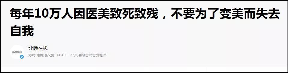 雖然大家時(shí)不時(shí)能看到醫(yī)美相關(guān)的負(fù)面新聞,也看到了網(wǎng)紅小冉、羅貝爾這樣慘死手術(shù)臺(tái)上的悲劇,但每年10萬(wàn)人因醫(yī)美致殘致死,還是太讓人震驚了!
