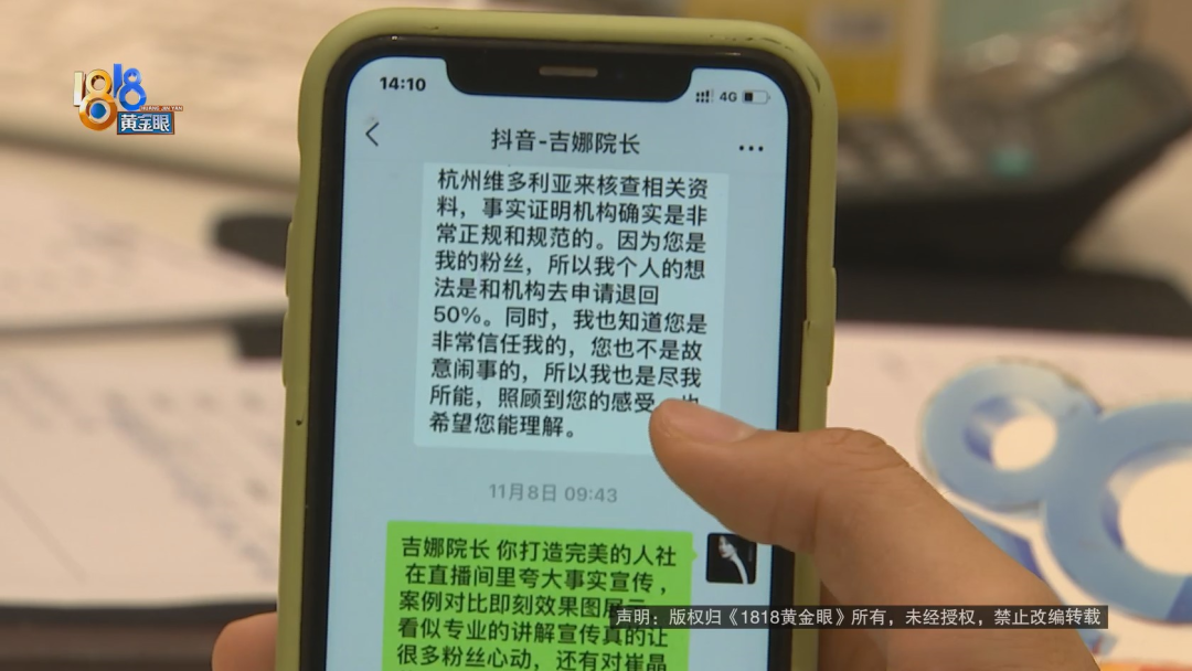 范經(jīng)理說(shuō),“吉娜”向醫(yī)院反映了趙女士的情況,所以她多次給趙女士打電話。趙女士說(shuō),不接電話的原因是,她認(rèn)為來(lái)電是騷擾電話。之前在老家把填充物融掉,也跟介紹人“吉娜”說(shuō)過。趙女士提供介紹人的電話,記者撥打過去,對(duì)方自稱是“維多利亞”的客服