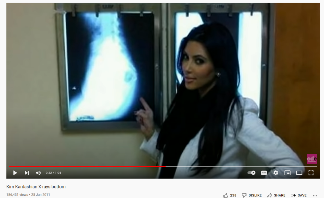無論研究如何證明女性腰臀比的黃金比例是0.75,但女生們對沙漏型身材的追求近乎癡迷。蜜桃臀代言人金卡戴珊十年前還曾經(jīng)特意發(fā)了X光片,以求證明自己的臀部是的。但后來,人們發(fā)現(xiàn),這恰巧可以通過一種叫巴西提臀術(shù)(Brazilian Butt Lift)的整形手術(shù)達成。