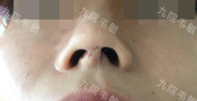 圖中這位姑娘2018年的時(shí)候在外院做了整形,結(jié)果導(dǎo)致鼻小柱壞死,缺了一大塊,影響外貌。她在2019年7月經(jīng)朋友介紹找到我,當(dāng)時(shí)經(jīng)過面診溝通終制定了手術(shù)方案。于2019年9月,利用臨近皮瓣做了修復(fù),手術(shù)后10個(gè)月,鼻小柱組織缺損得到良好修復(fù),但有一些偏斜。