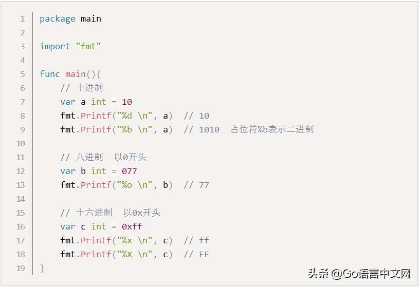 Go語言中無法直接定義二進制數(shù),關(guān)于八進制和十六進制數(shù)的示例如下: