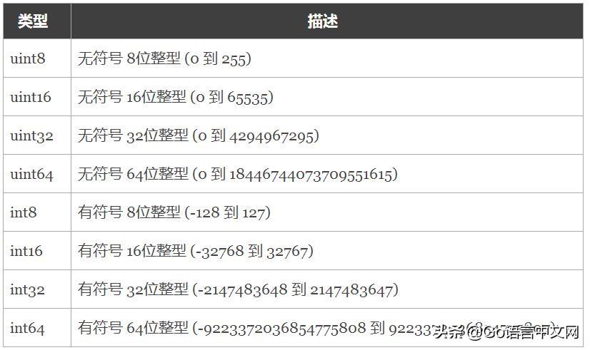 注意: 在使用int和 uint類型時,不能假定它是32位或64位的整型,而是考慮int和uint可能在不同平臺上的差異。