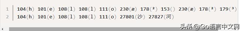 uint8類型,或者叫 byte 型,代表了ASCII碼的一個字符。rune類型,代表一個 UTF-8字符。