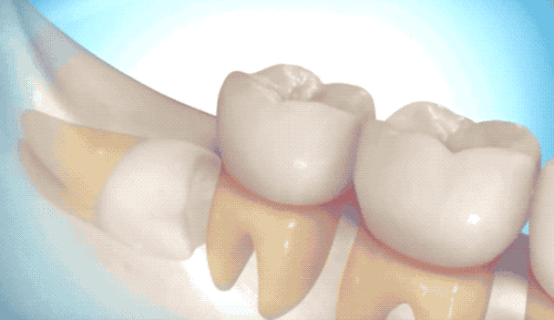也是先切開(kāi)牙肉,翻開(kāi)并露出骨頭,切下牙冠后取出,再處理下面的牙根。