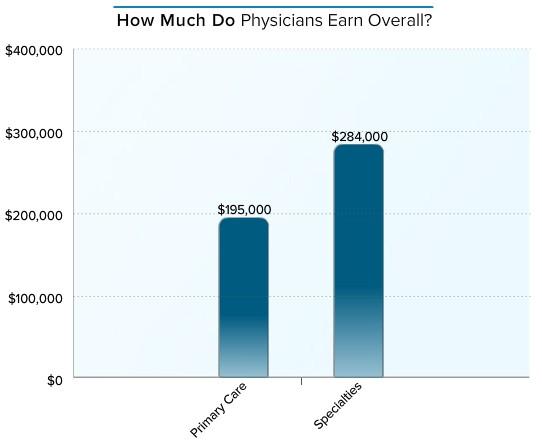 專科醫(yī)生的平均收入為284,000美元,而初級(jí)保健醫(yī)生(PCP)是195,000美元,與既往幾年相比,呈現(xiàn)一種整體的適度上升趨勢(shì)。