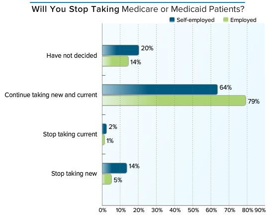 79%受雇者和64%私人診所醫(yī)生稱會(huì)繼續(xù)接收新的和已有的醫(yī)?;蛘哚t(yī)療救助計(jì)劃病人。