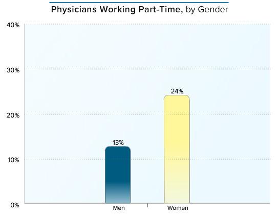 2010年,48%的醫(yī)學(xué)學(xué)位授予了女性。鑒于醫(yī)生短缺情況日益嚴(yán)重,有近24%的女醫(yī)生和13%男醫(yī)生是兼職工作還是挺讓人擔(dān)憂的。數(shù)據(jù)顯示,即使是全職工作的女醫(yī)生,每周工作時(shí)間也要低于男同事。研究表明,更大的工作靈活性和更少工作時(shí)間是提高女醫(yī)生職業(yè)滿意度和預(yù)防職業(yè)倦怠的關(guān)鍵因素。