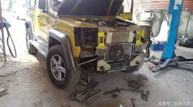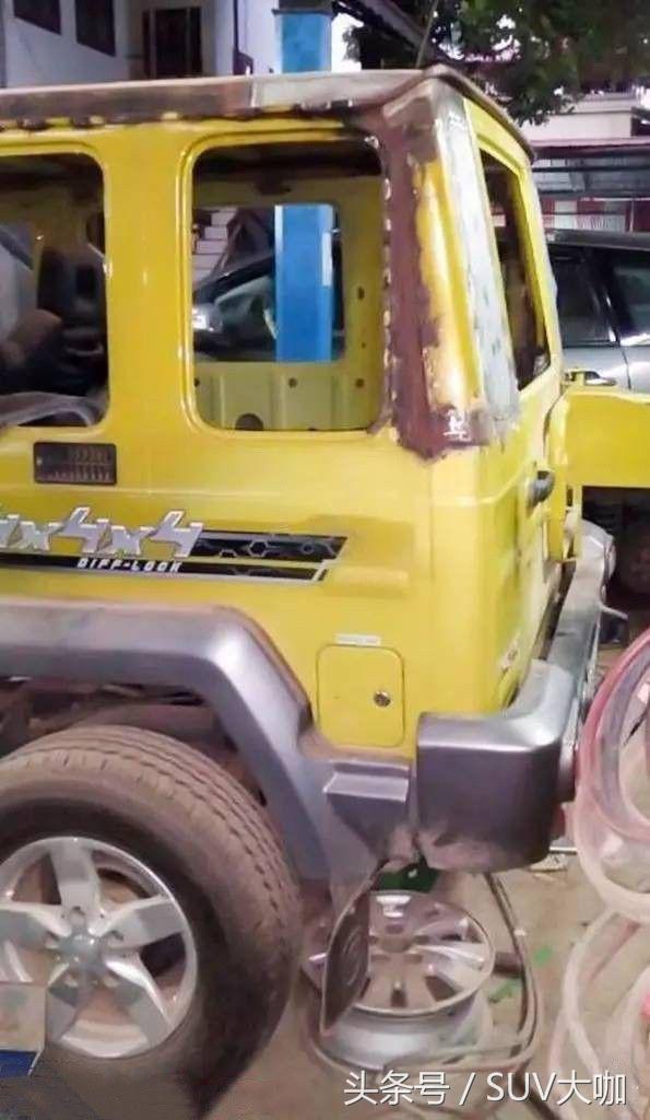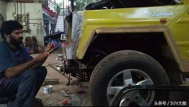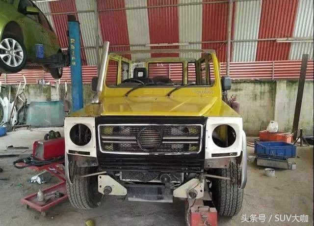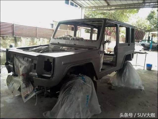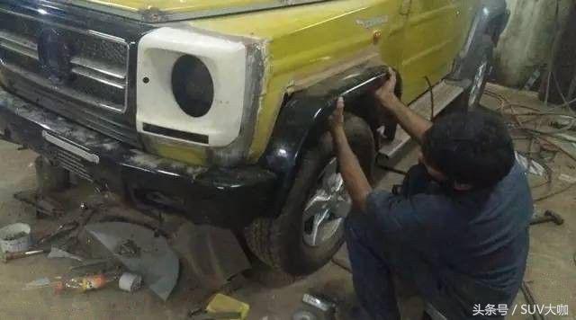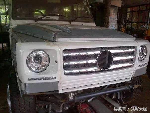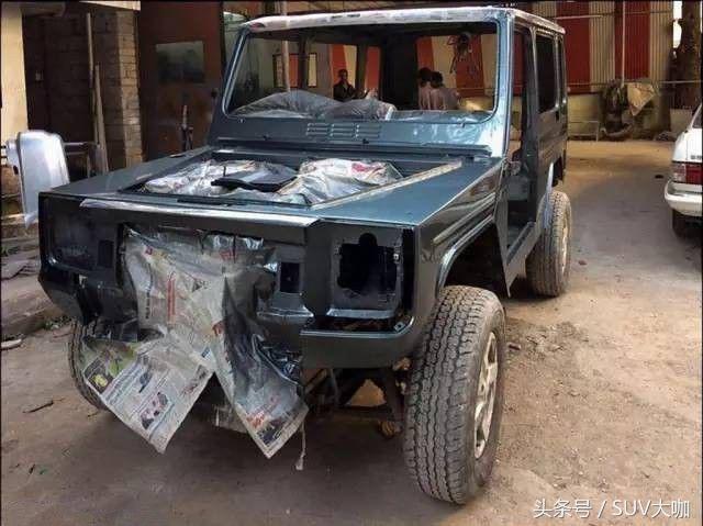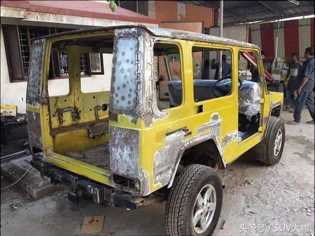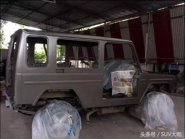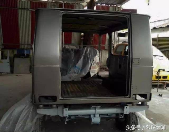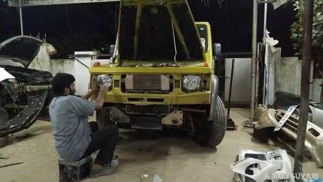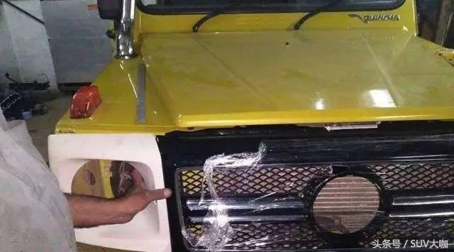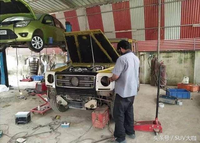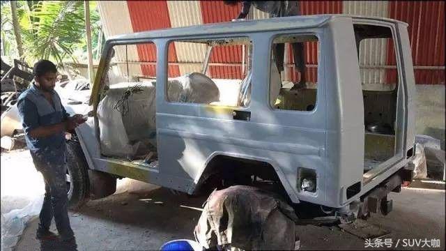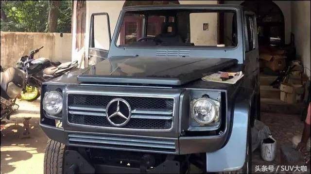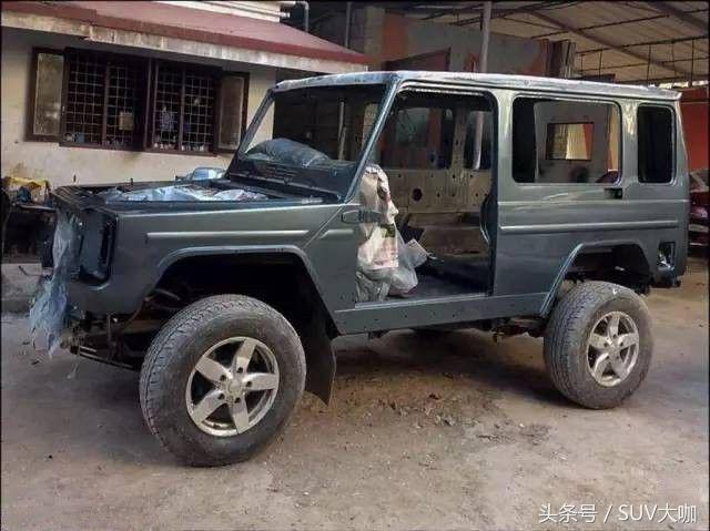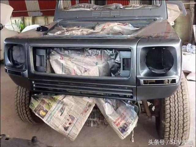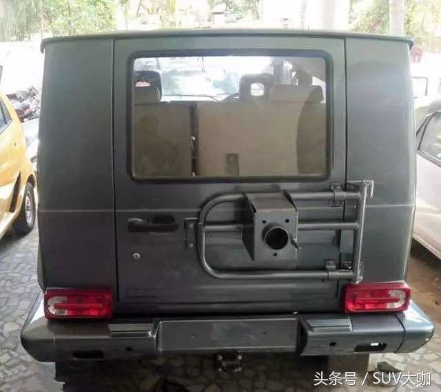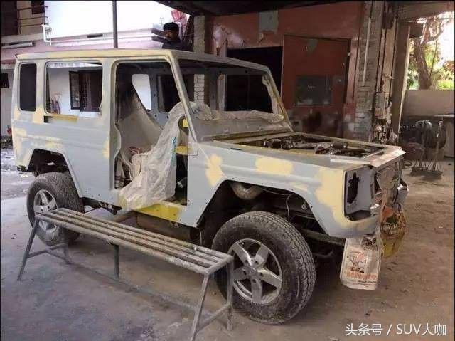 噴完漆,中網(wǎng)、前后大燈和車尾部分的備胎架子裝上后,這款“印度版”的奔馳G級(jí)雛形已經(jīng)呈現(xiàn)出來(lái)。