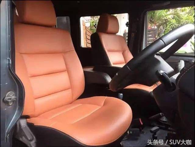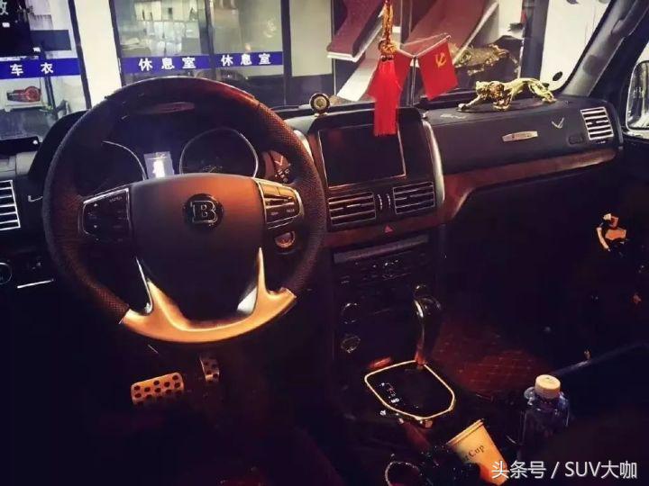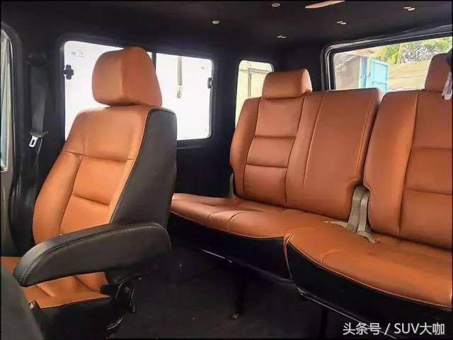 前后排都換了皮質(zhì)座椅,中控臺(tái)雖然沒(méi)有做出奔馳G的模樣,但進(jìn)行重新包裹后,看起來(lái)還是挺有質(zhì)感的,一點(diǎn)也不失豪華質(zhì)感。