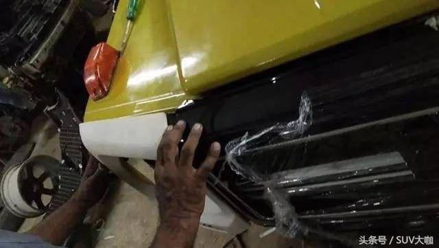 改裝從前臉開(kāi)始,師傅先把這輛Gurkha的中網(wǎng)拆下來(lái)。