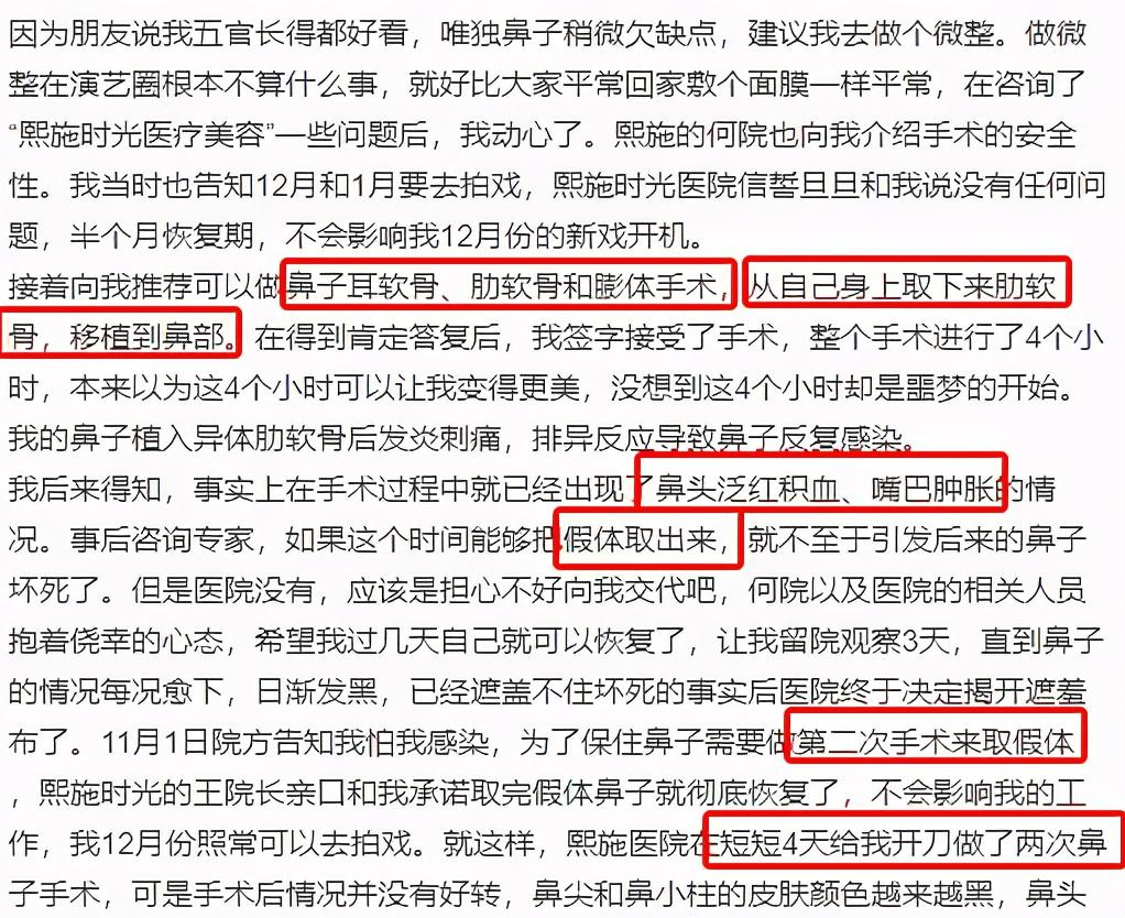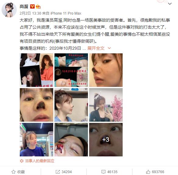 2月2日,演員高溜發(fā)長文自曝整容失敗導致鼻尖壞死,洋洋灑灑幾千字,圖文并茂,立馬引起了網友們的關注。