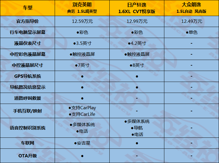從配置對比來看,英朗、軒逸相對較好,更能俘獲消費(fèi)者的芳心。英朗更有優(yōu)勢,特別是在智能互聯(lián)方面,是合資家轎的標(biāo)桿,這也展現(xiàn)出了別克英朗對消費(fèi)者用車需求的把握和越立同級的產(chǎn)品力。