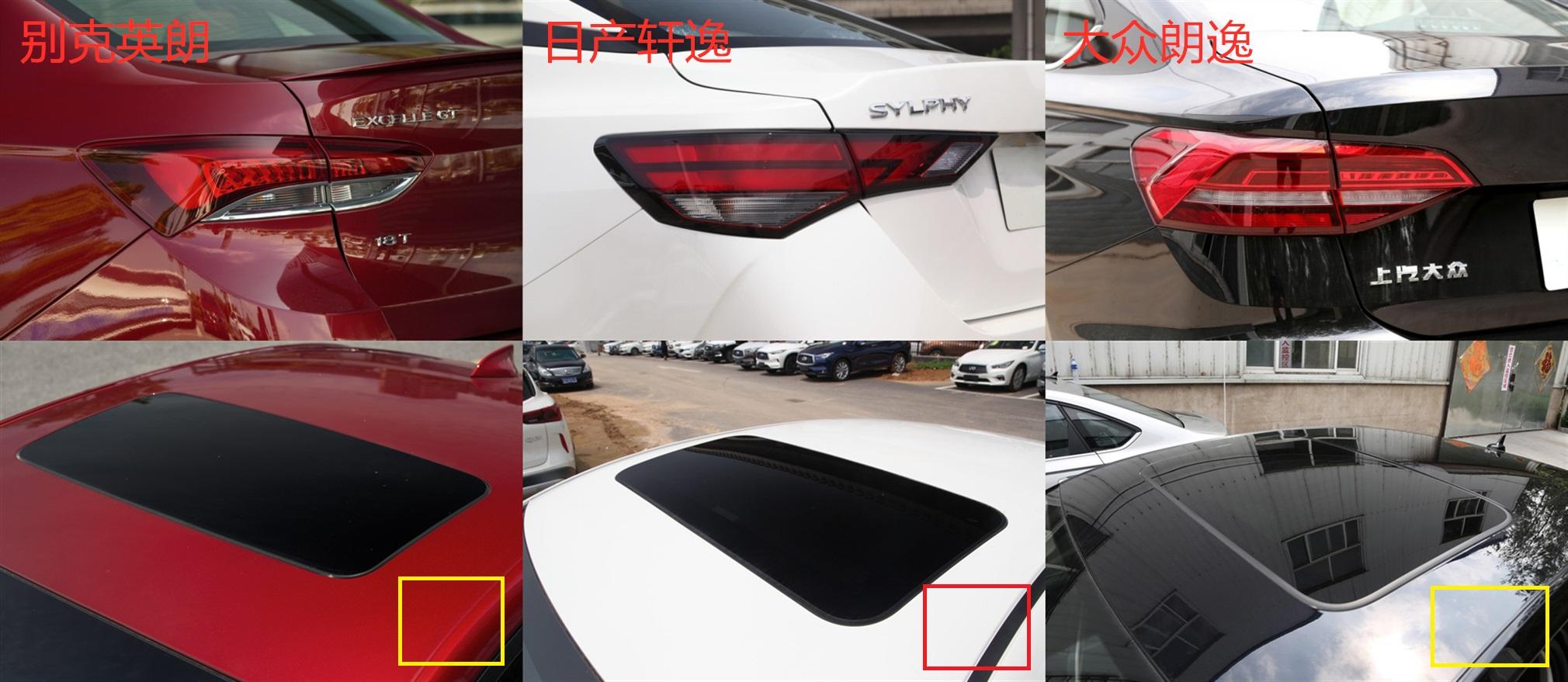客觀來說,這三款車的用料做工都很用心,但還是能發(fā)現(xiàn)一些差距。比如,英朗和朗逸都通過先進(jìn)的焊接工藝實(shí)現(xiàn)了車頂?shù)模幰輨t在車頂留下了掩蓋焊接痕跡的黑色飾條。