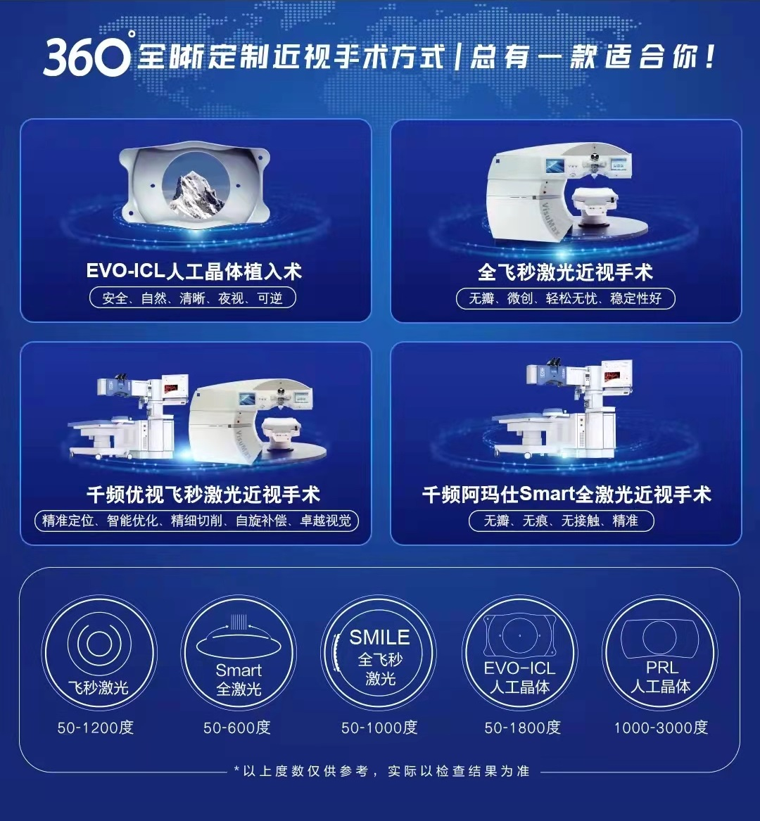 作為“普瑞慈善光明基金·陽光愛眼關(guān)愛計劃”公益項目的捐贈方及定點執(zhí)行單位,武漢普瑞眼科醫(yī)院在基金的落實過程中發(fā)揮了積極作用,醫(yī)院屈光手術(shù)??崎_展的360度全晰定制近視手術(shù)方式,實現(xiàn)臨床主流近視手術(shù)方式全覆蓋,如全飛秒激光、千頻優(yōu)視飛秒激光、ICL晶體植入、Smart全激光、PRL人工晶體植入等,無論是50-3000度的近視,還是眼部形態(tài)不好,在武漢普瑞眼科醫(yī)院都可找到適合自己的手術(shù)方式。
