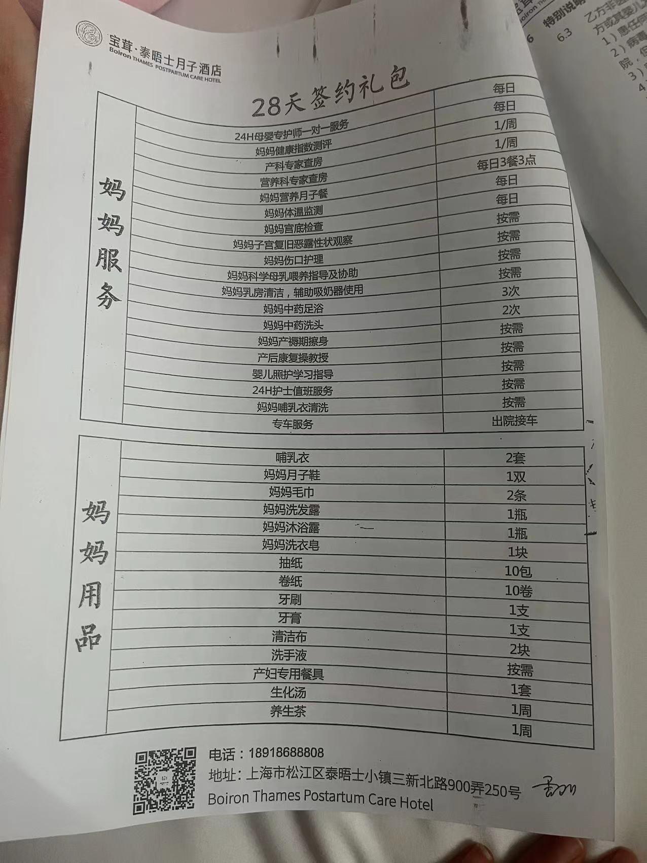 月子中心的簽約禮包