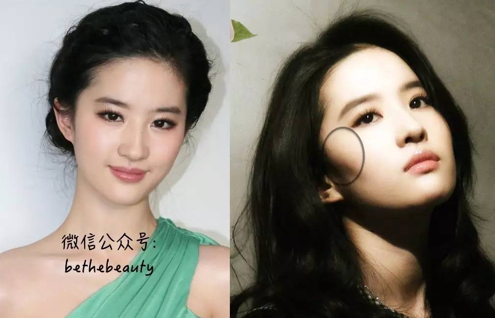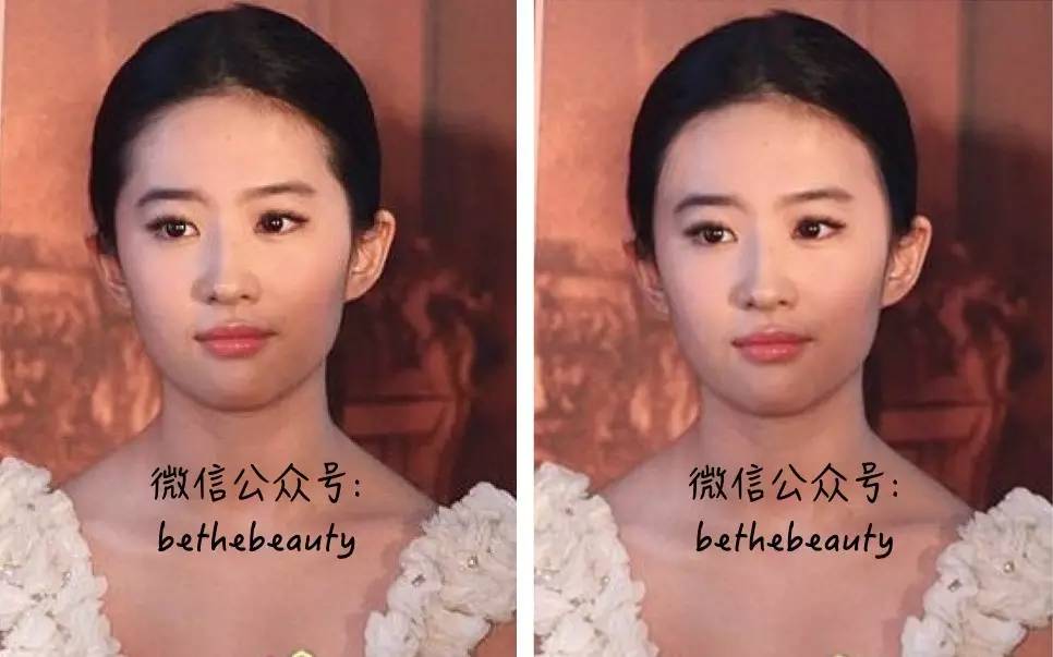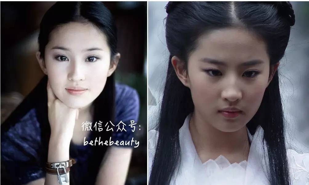 顴弓突出的劉亦菲雖然有折角依然是顯得臉窄長,但是也會顯得顴弓更突出了,沒有折角雖然臉變寬了,但是顴弓那里顯得不那么突兀了。