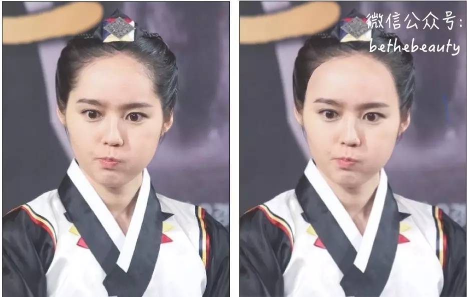 對比一下左邊有折角的韓佳人和右邊沒有折角的韓佳人,是不是左邊看起來臉更窄了?