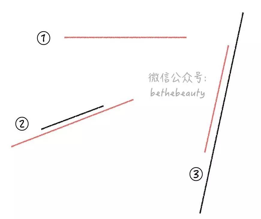 相信大部分人都會覺得②長,③短,但實際上三條紅線是一樣長短的