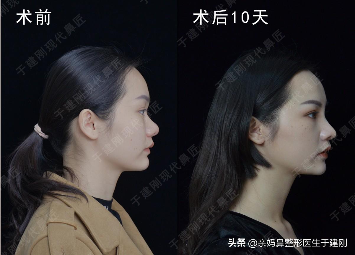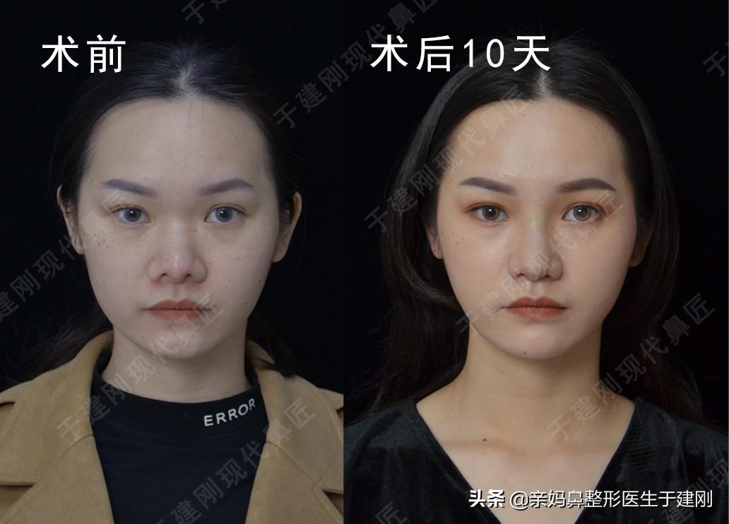 術(shù)后十天,鼻部尚未完全消腫,相比術(shù)前鼻翼縮小更顯精致秀氣,鼻尖表現(xiàn),面部整體立體感提升。