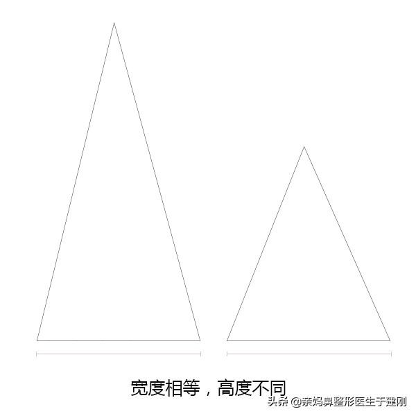 于叔給大家打個(gè)比方:好比兩座寬度相等的小山,比較高的視覺效果上看起來就沒有那么寬,而高度較低的小山,視覺效果就會(huì)偏寬。同理,如果鼻梁高度偏低也會(huì)顯得鼻翼過寬,我們只要提升鼻梁高度,即可從視覺效果上改良鼻梁過寬的問題,具體還需要看個(gè)人情況而定。