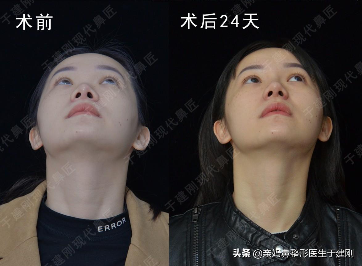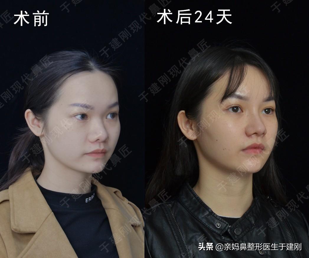 姑娘術(shù)后24天復(fù)診,鼻部恢復(fù)情況良好,還有些許腫脹,改良鼻翼過寬問題,從視覺效果上看面部整體都精致,小巧了許多。