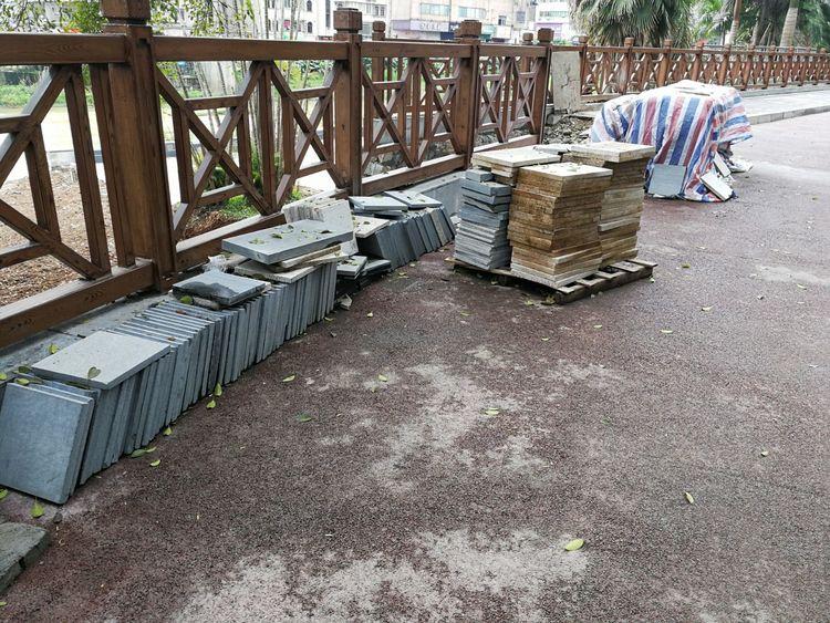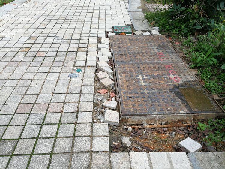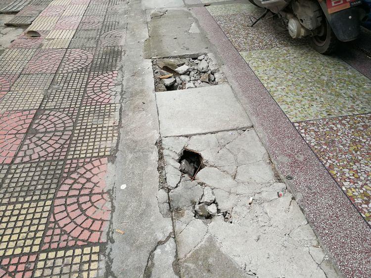 龍川路步行道,施工粗糙。