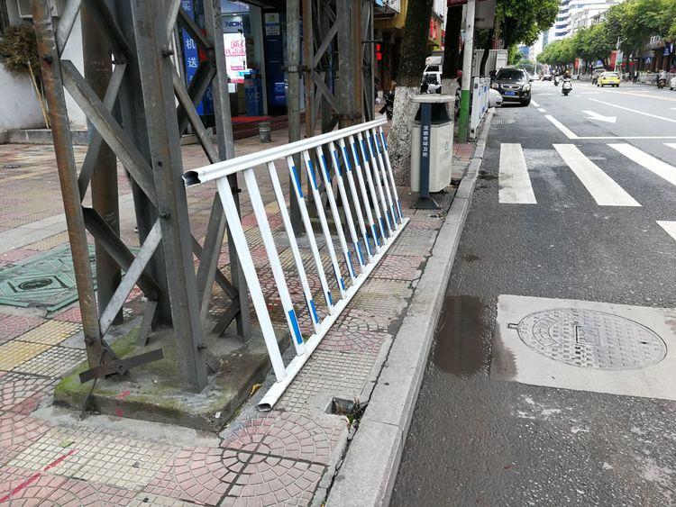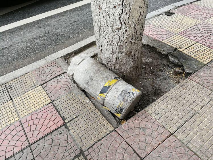 軍民路,石墩倒了。
