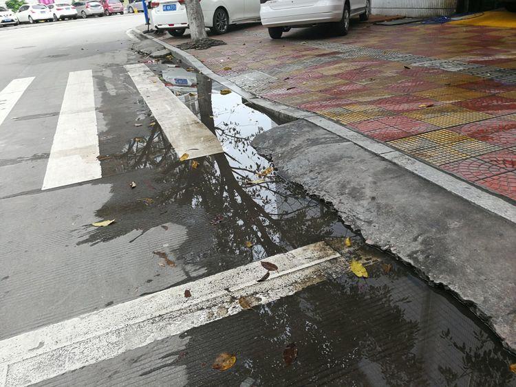 市城市執(zhí)法局對面,洗車店水流路面。