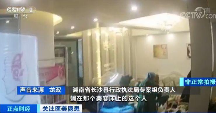 湖南省長(zhǎng)沙縣行政執(zhí)法局專案組負(fù)責(zé)人 龍雙:我們進(jìn)去看的時(shí)候,躺在那個(gè)美容床上的這個(gè)人,傷口還在不停滲血。然后我們看到,帶血的紗布、刀片都是隨意地丟棄到這個(gè)生活垃圾筒里面。