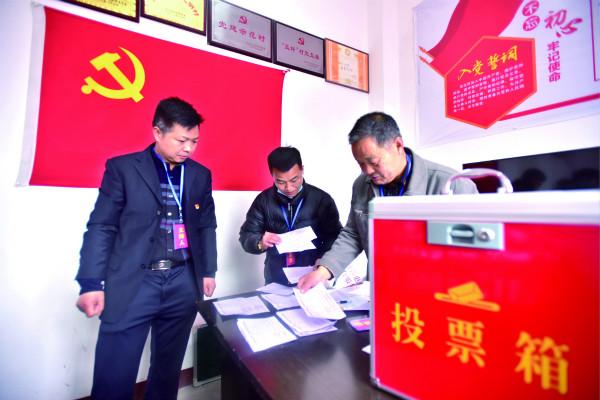 日前,四川省內(nèi)江市東興區(qū)雙橋鎮(zhèn)東山村舉行村民委員會換屆選舉大會,紀(jì)檢監(jiān)察干部在換屆選舉統(tǒng)票處進(jìn)行現(xiàn)場監(jiān)督。(圖片來源:人民視覺)