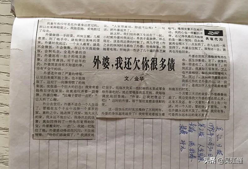 書看得多了,我突然發(fā)現(xiàn),這樣的文章我也可以寫啊!于是在一個上夜班的晚上,我寫了一篇散文投給了《吳江日報》。稿子寄出之后,自己覺得肯定不抱希望,其實心里又是抱了很大的希望。