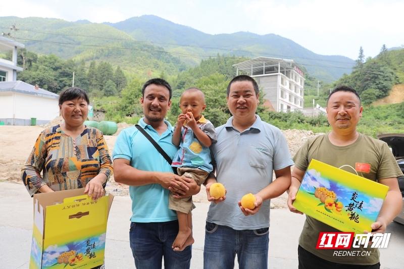 眼下正值炎陵黃桃摘果期。當日,在密花村的一處果園里,沉甸甸的黃桃把桃枝都壓彎了腰,萬志奇與家人熟練的忙著摘桃、去套袋、分揀、裝箱,這批每箱10斤的禮盒黃桃即將被預訂的游客帶走。
