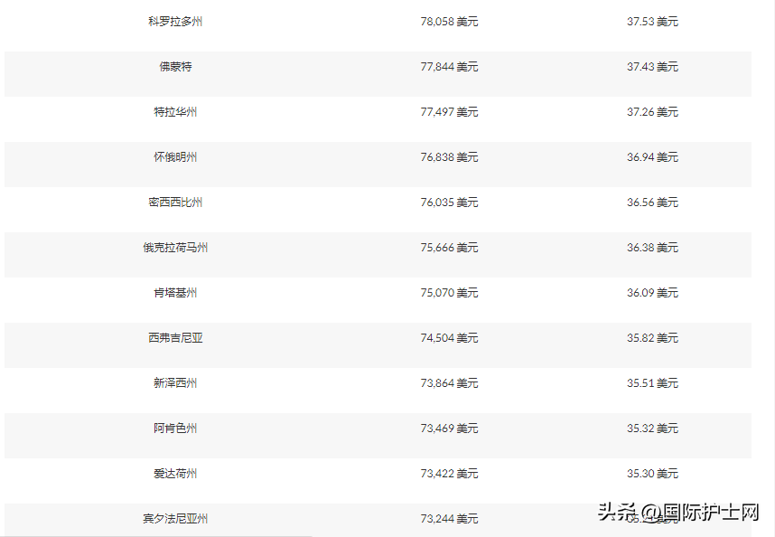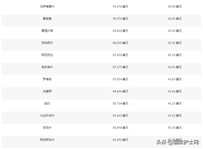 各州美容護士工資