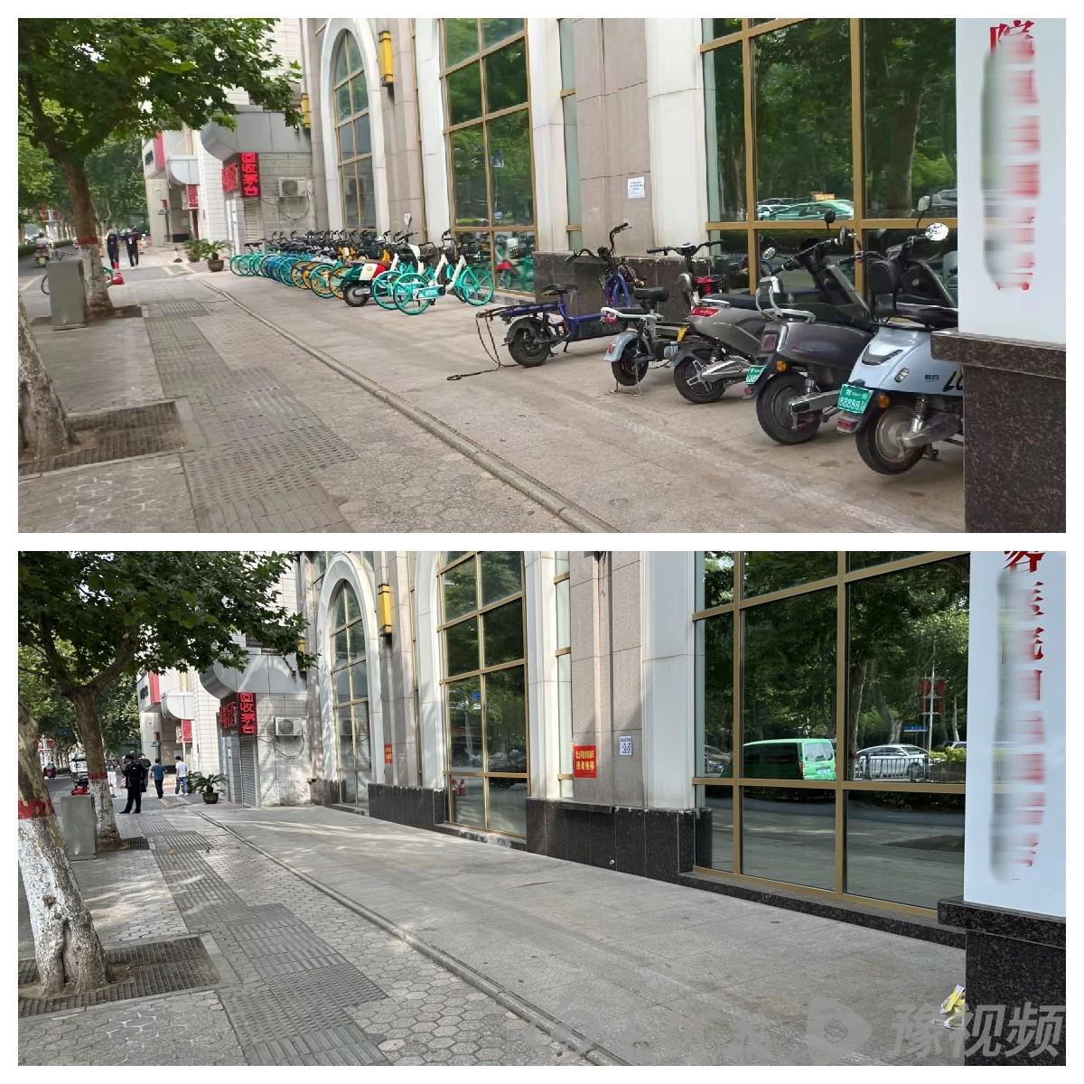 居民王阿姨路過鄭州地鐵三號(hào)線B2站出入口時(shí)驚喜地發(fā)現(xiàn),原來在非機(jī)動(dòng)車道停得密密麻麻的非機(jī)動(dòng)車不見了,車道一下寬敞了許多。跟隨路旁的非機(jī)動(dòng)車引導(dǎo)指示箭頭可以看到,在三號(hào)線B2站出入口的東側(cè)多出一處規(guī)劃好的非機(jī)動(dòng)車停車區(qū)域,原先停在路邊的非機(jī)動(dòng)車現(xiàn)在全部有序停放在劃定區(qū)域,看上去整潔又舒心。