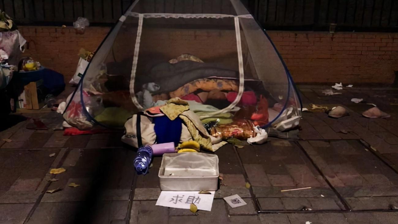 為了方便乞討,余曉芳帶著孩子睡在街頭