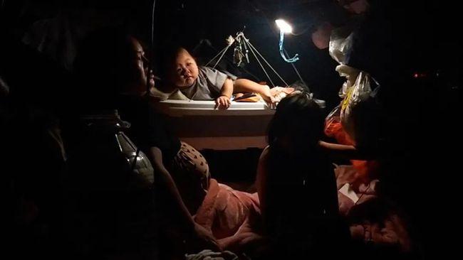 晚上,三人在車上點了盞臺燈