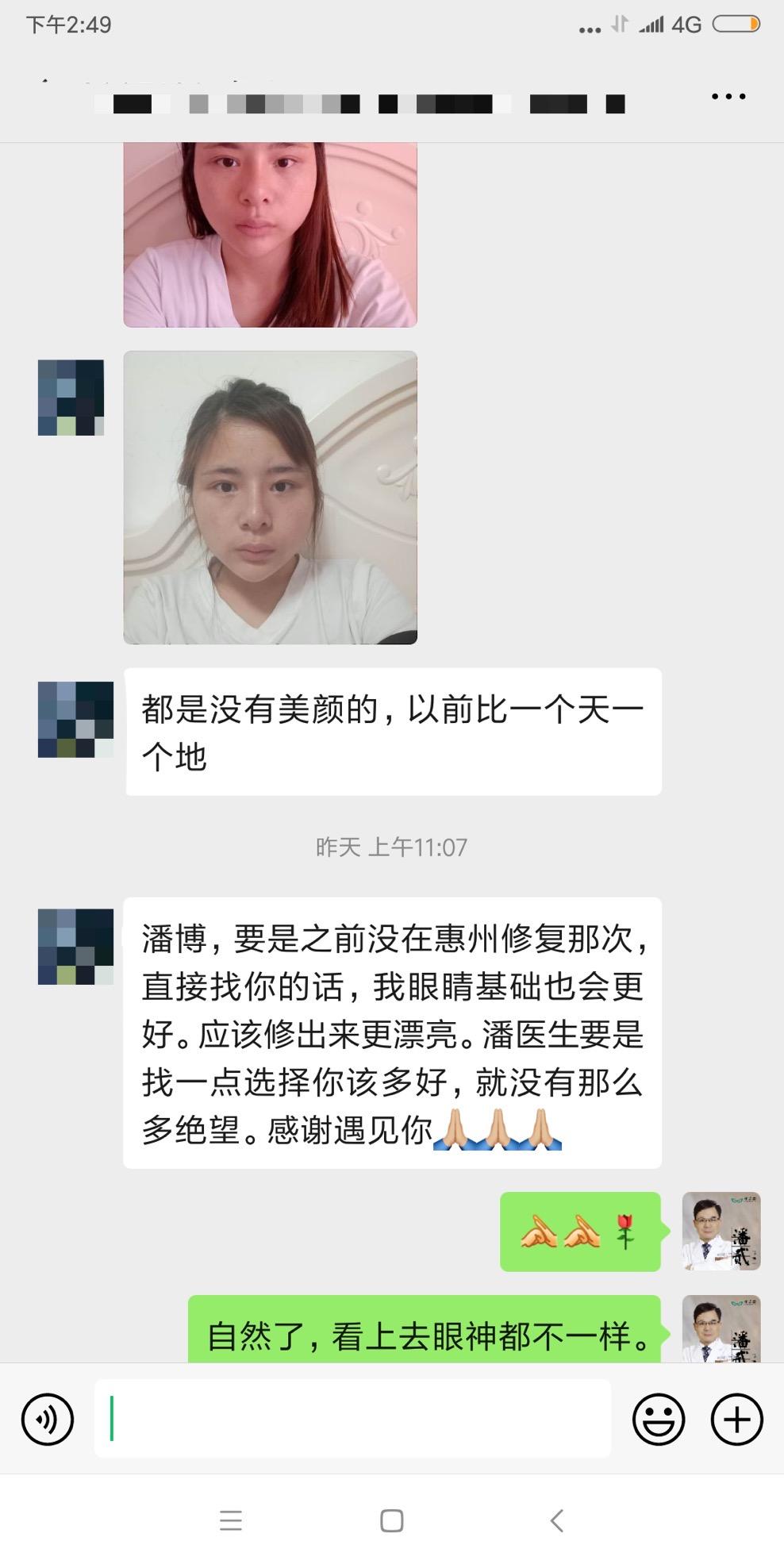 ??插句題外話,雙眼皮失敗后有家人的陪伴和支持還是很重要的,姑娘的老公一開(kāi)始單獨(dú)加我線上為姑娘預(yù)約面診,后來(lái)一次面診,一次再面診,一次手術(shù),共來(lái)院3次都陪伴在姑娘左右并且耐心等候姑娘,必須給個(gè)大大的贊給姑娘老公~
