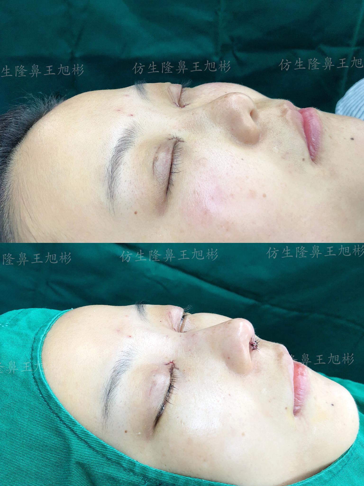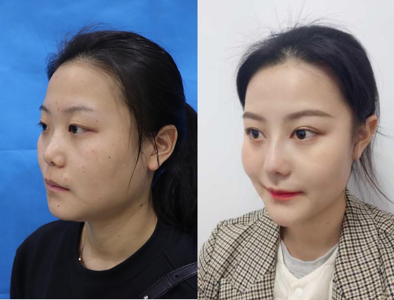 基于小橙的皮膚比較緊,撐不了太高的鼻子,術(shù)中只用膨體稍微墊高,用肋軟骨重新搭建鼻尖支架,下拉鼻頭,改良鼻翼下垂和 鼻孔朝天的現(xiàn)象。術(shù)后可見鼻子從凹陷的面中“拉”了出來,鼻型小巧自然,扁平感的改良肉眼可見。