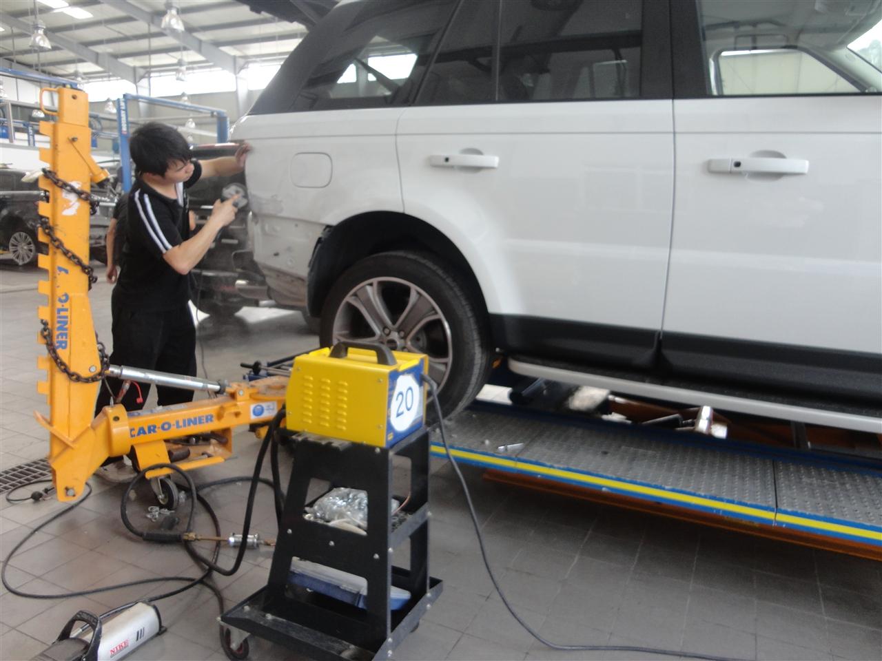 與鋼材的鈑金不同,鋁合金做鈑金需要鋁整形機(jī)、鋁電焊機(jī)、鋁切割機(jī)等一系列工具。而且,鋁合金車身不能用傳統(tǒng)的原子灰,也就是膩?zhàn)臃蹃硖畛淇油?,必須要用專用的鋁粉和固化劑來找平。