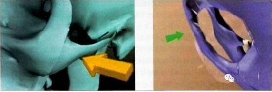 2、截骨線細(xì)窄,顴弓內(nèi)收時(shí)兩斷骨面能貼合,也可以防止顴弓下陷。